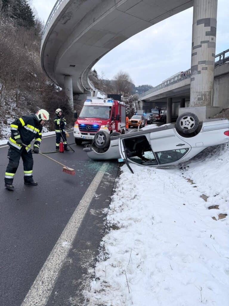 🚨Alarmstichwort: T03V (Verkehrsunfall mit verletzten Personen) Heute, am frühen Nachmittag wurden wir zu einem Verkehrsunfall alarmiert. Ein PKW überschlug sich