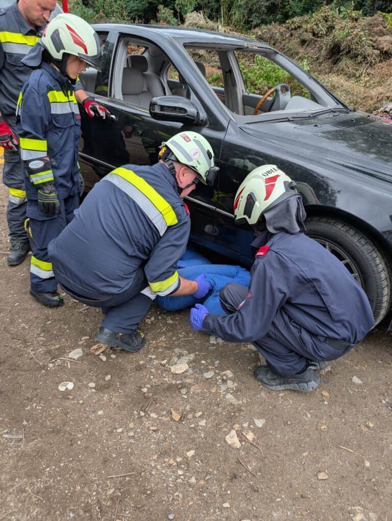 Am Vormittag fand dann der letzte Einsatz mit dem Einsatzszenario Verkehrsunfall bei der Firma Erdbau Prietl. Es waren vier Personen in einem PKW eingeklemmt, welche mittels hydraulischem Rettungsgerät befreit werden musste.