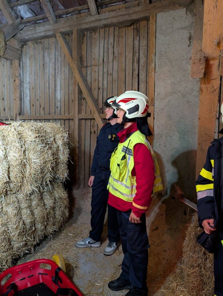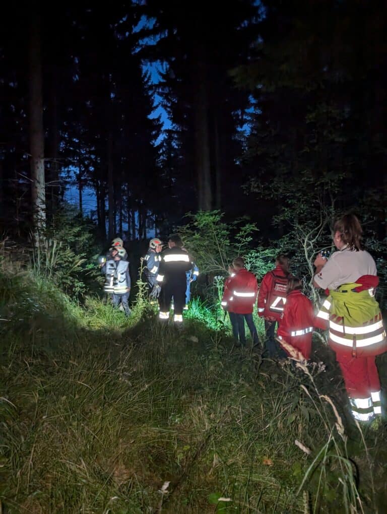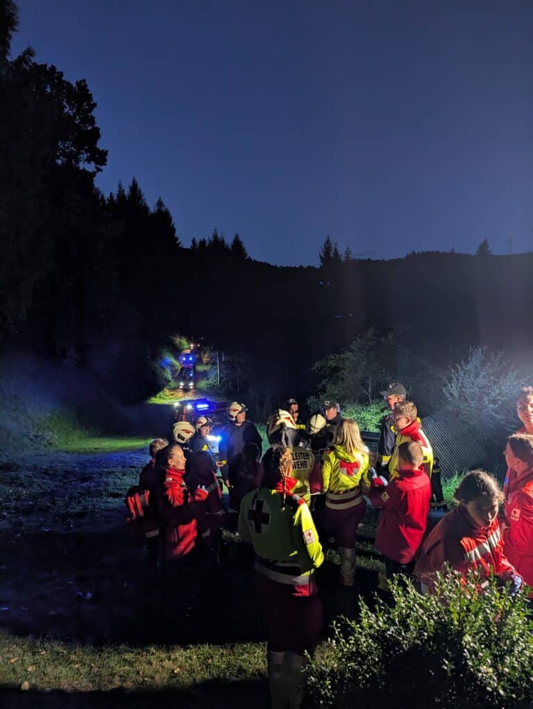 Gegen 22 Uhr wurde unsere Jugend dann vom Roten Kreuz als Unterstützung zum Retten von zwei Personen alarmiert. Da die Lichtverhältnisse sehr schlecht waren, wurde von unserer Jugend der „Einsatzort“ entsprechend mit mobilen Scheinwerfern ausgeleuchtet.