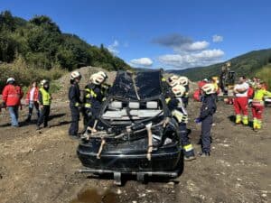 Am Vormittag fand dann der letzte Einsatz mit dem Einsatzszenario Verkehrsunfall bei der Firma Erdbau Prietl. Es waren vier Personen in einem PKW eingeklemmt, welche mittels hydraulischem Rettungsgerät befreit werden musste.