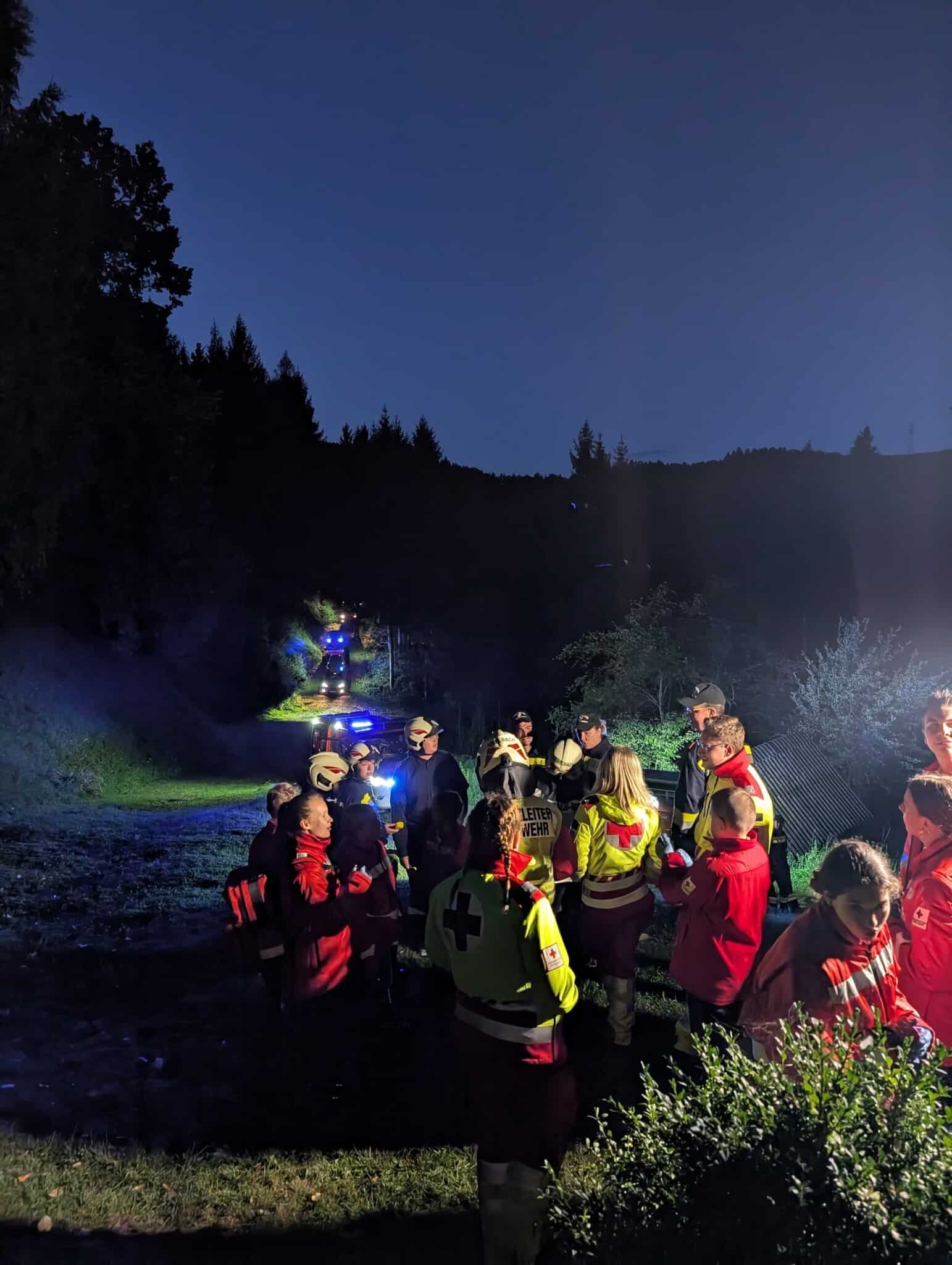 Gegen 22 Uhr wurde unsere Jugend dann vom Roten Kreuz als Unterstützung zum Retten von zwei Personen alarmiert. Da die Lichtverhältnisse sehr schlecht waren, wurde von unserer Jugend der „Einsatzort“ entsprechend mit mobilen Scheinwerfern ausgeleuchtet.