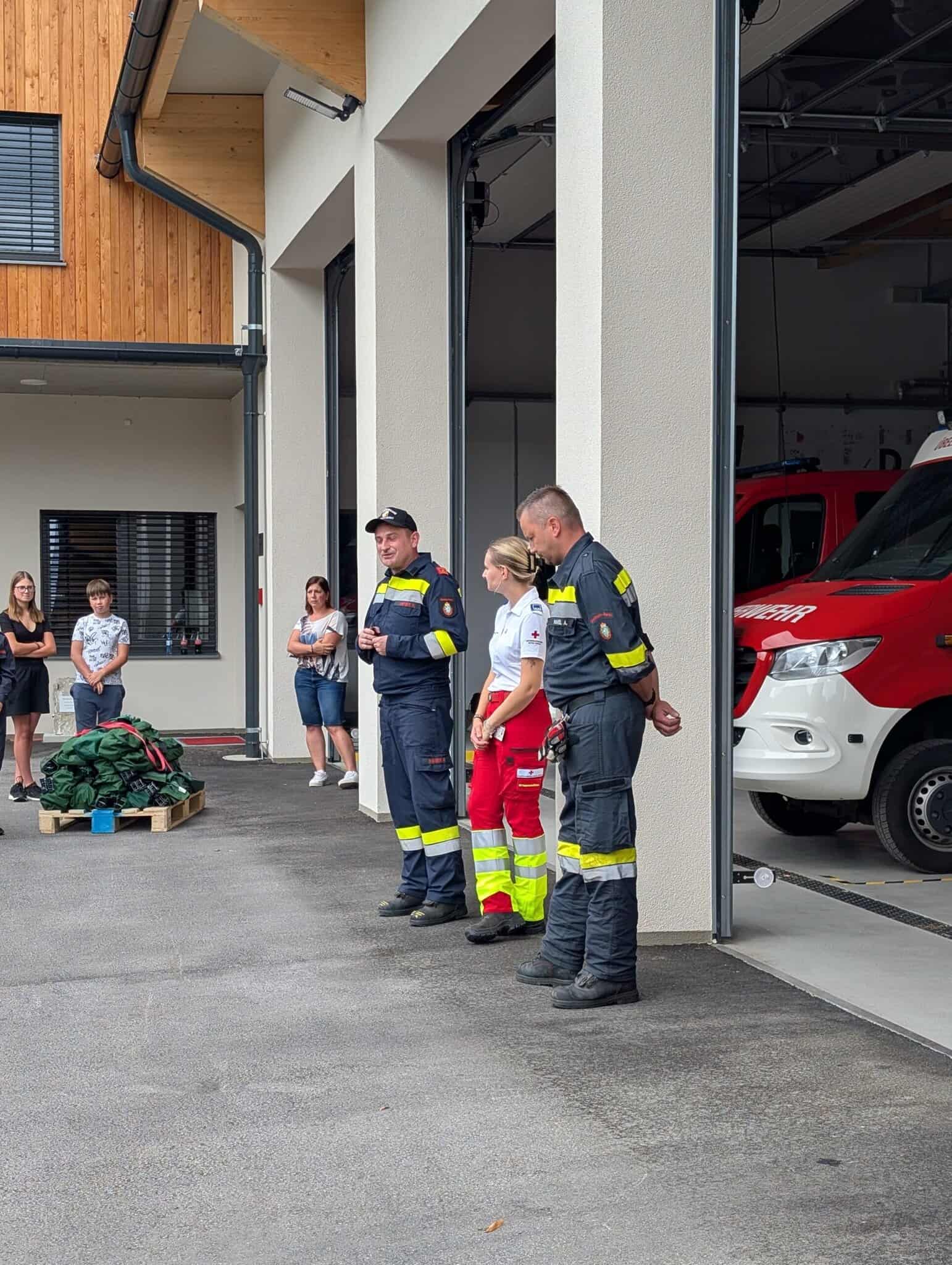 Der Motorradfahrer wurde unter dem Auto eingeklemmt und vier Personen befanden sich im Auto. Die Feuerwehr wurde von der Rettung nachalarmiert. Zeitgleich ging bei der Feuerwehr ein fiktiver BMA Alarm der Firma Gaulhofer ein, welcher auch abgearbeitet werden musste.