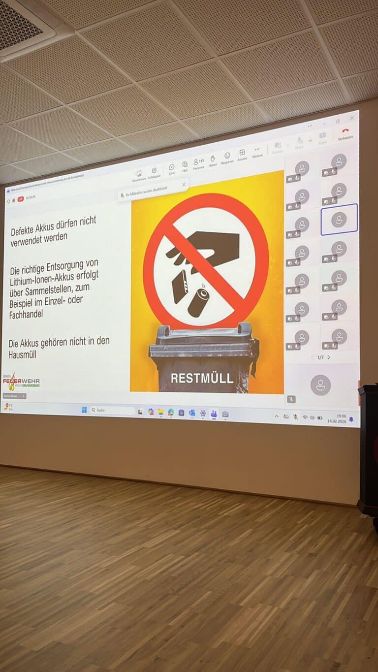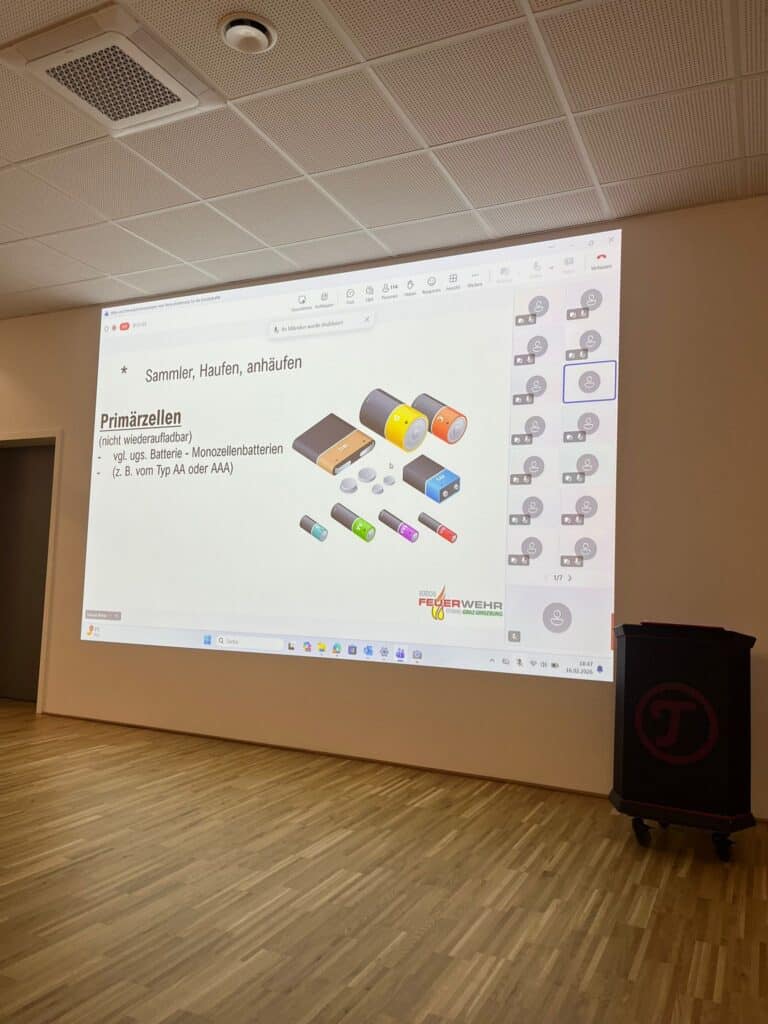 Heute fand das 2. Webinar des Bereichsfeuerwehrverbandes Graz-Umgebung statt. Das heutige Thema war: „Akkus und Stromspeicheranlagen eine Herausforderung für die Einsatzkräfte“. Dieses Thema wurde uns von unserem ABI Andreas Reiter näher gebracht.